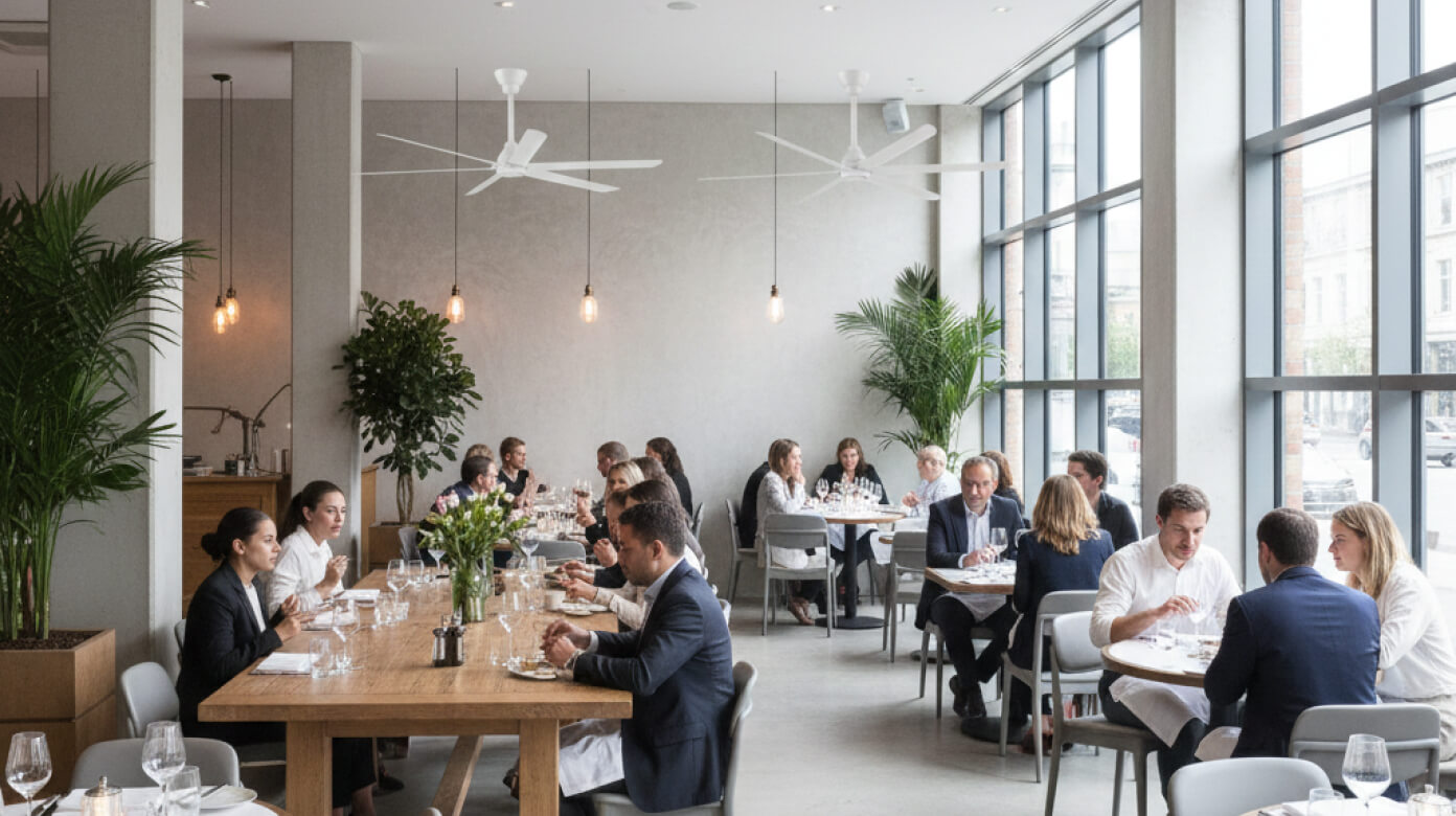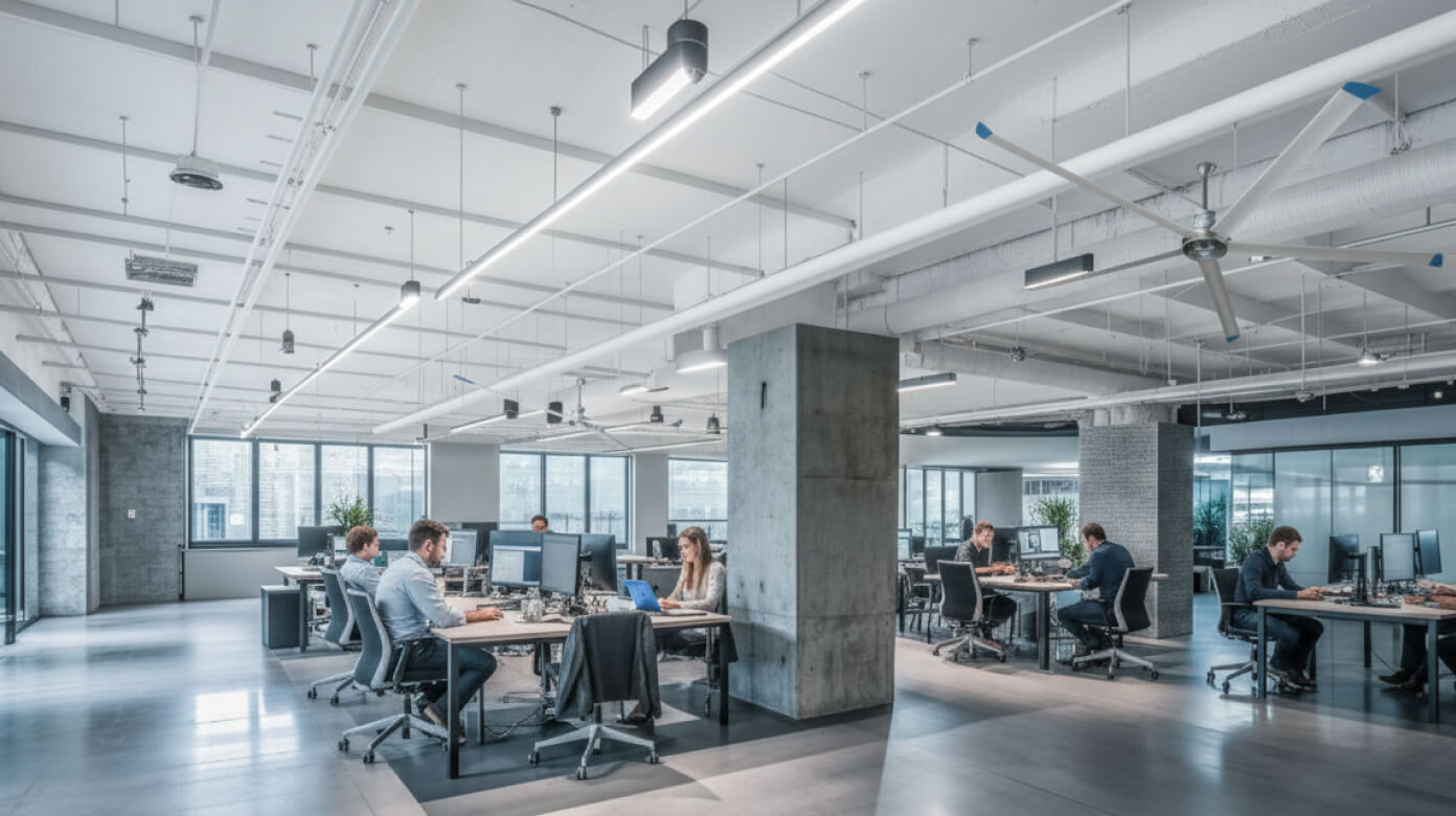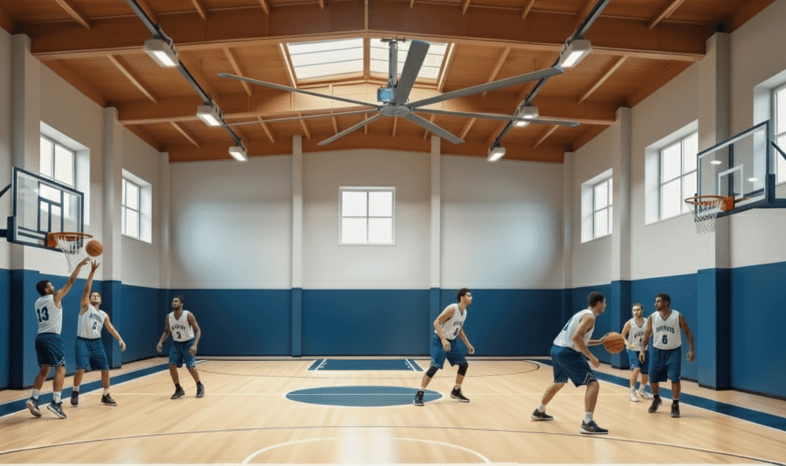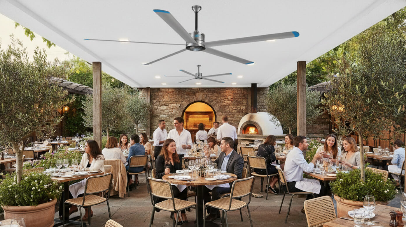 A series of 6-blade HVLS (High Volume Low Speed) fans designed to improve thermal comfort in commercial spaces, gyms, retail areas, offices, laboratories, hotels, bars, restaurants, stores, exhibition halls, waiting rooms, and meeting rooms—all with minimal noise.