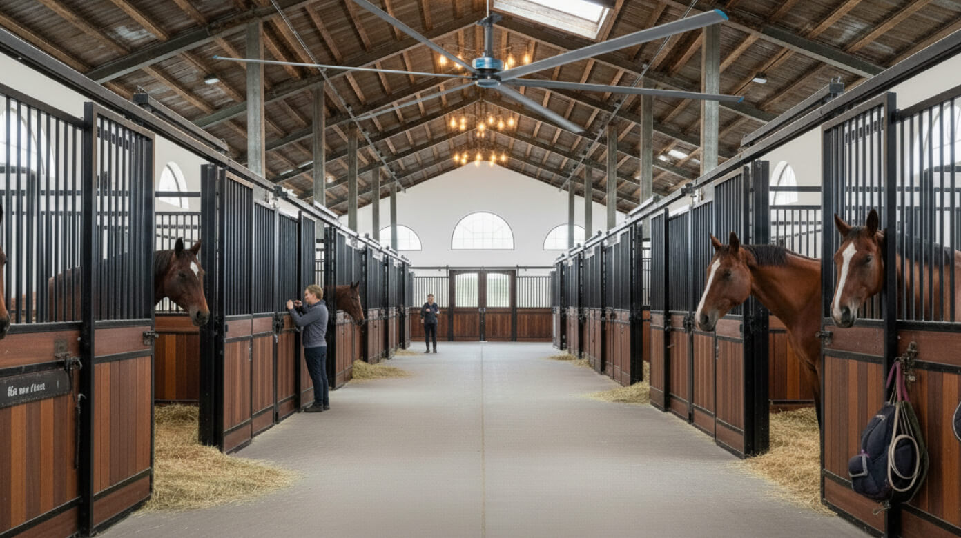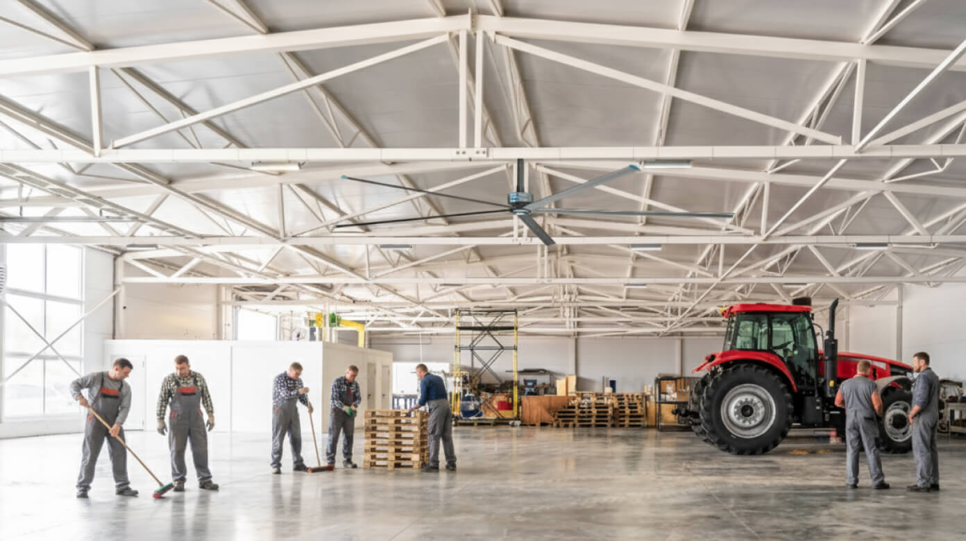 A series of 5-blade HVLS (High Volume Low Speed) fans designed to improve thermal comfort in large spaces such as warehouses, industrial facilities, logistics centers, sports centers, livestock farms, and barns, all while operating extremely quietly.