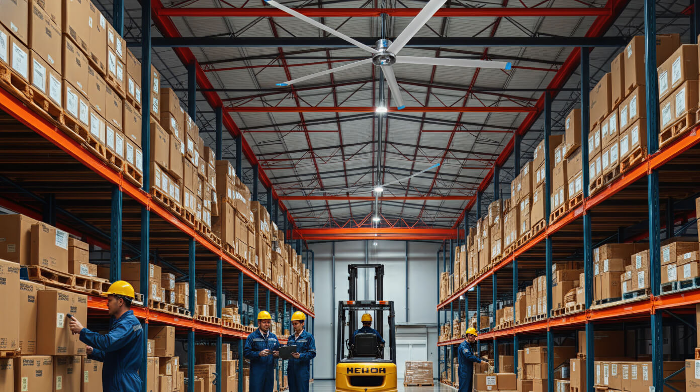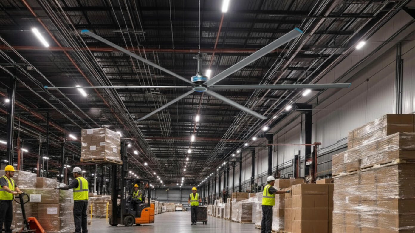 A series of 5-blade HVLS (High Volume Low Speed) fans designed to improve thermal comfort in large spaces such as warehouses, industrial facilities, laboratories, logistics centers, hotels, hospitals, churches, supermarkets, and exhibition halls, all while operating extremely quietly.