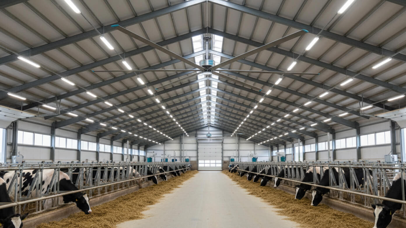A series of high-capacity HVLS (High Volume Low Speed) fans with 6 blades, designed for professional use, providing superior thermal comfort in large spaces such as warehouses, industrial facilities, logistics centers, livestock farms, and barns—all while operating with maximum quietness.