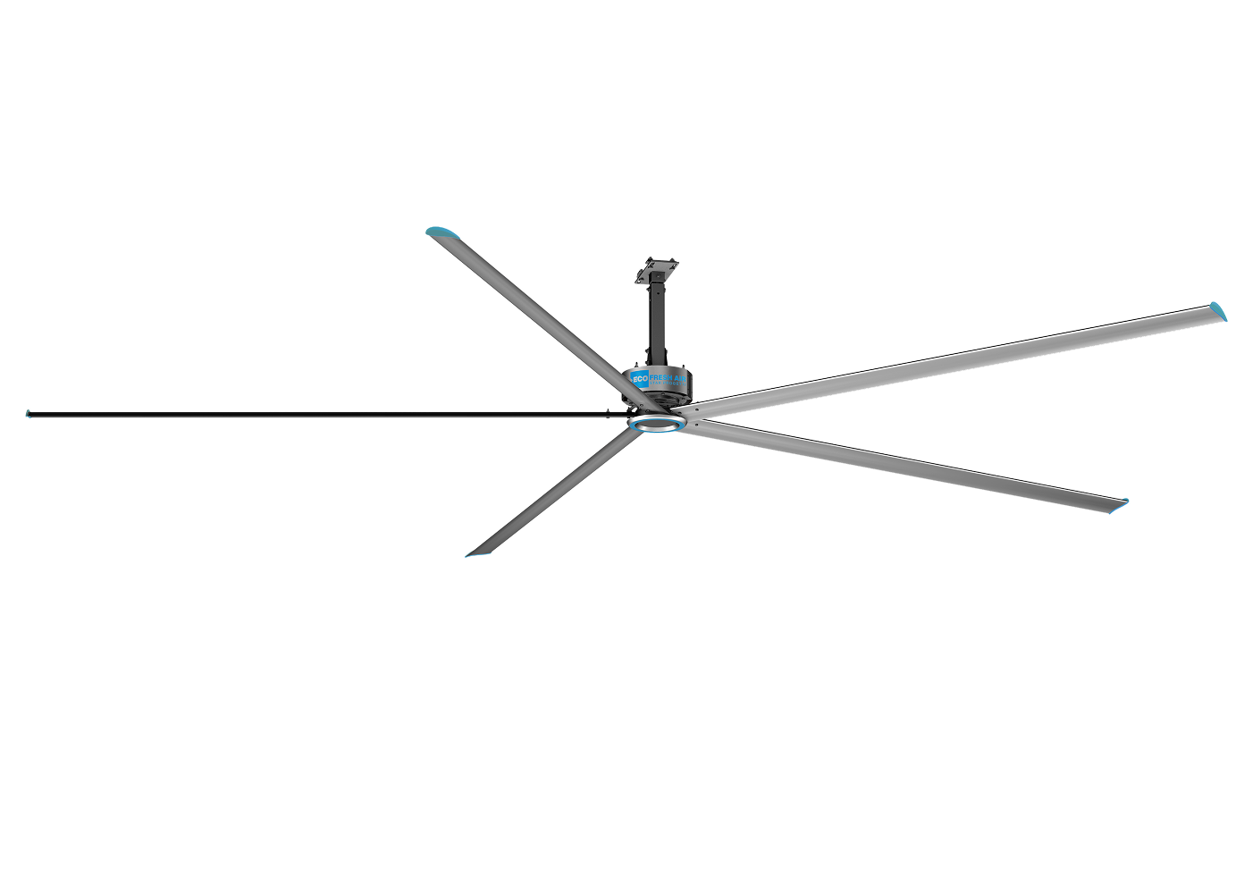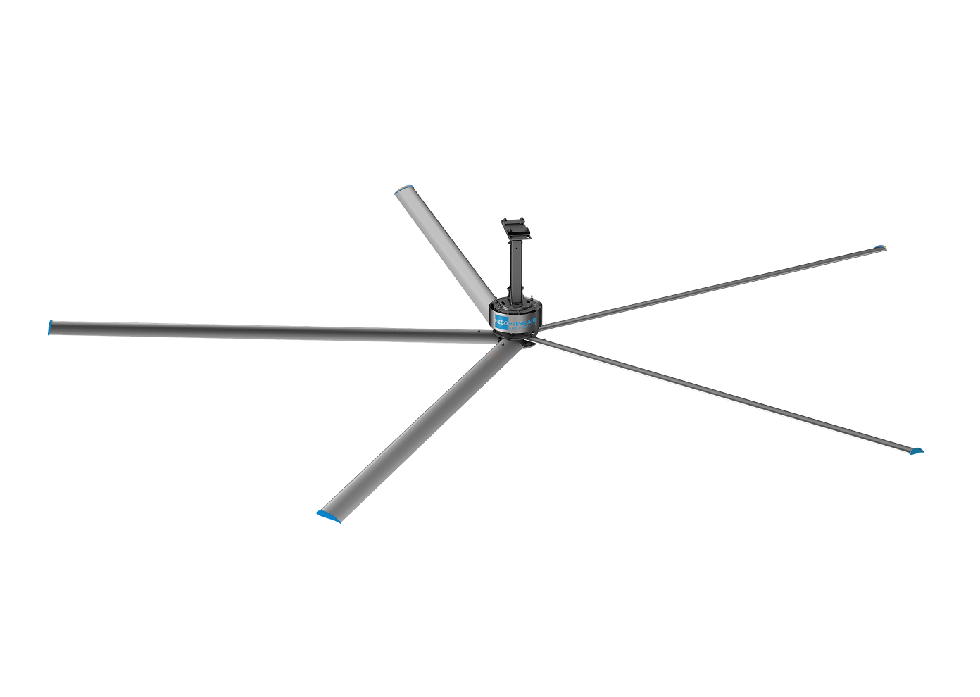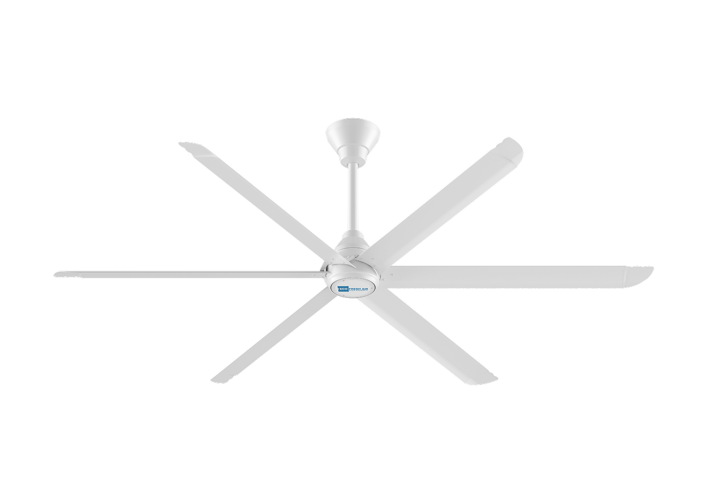 Una serie de ventiladores HVLS (alto volumen y baja velocidad) de gran capacidad con 6 aspas, diseñados para uso profesional, que proporcionan un confort térmico superior en grandes espacios como almacenes, instalaciones industriales, centros logísticos, explotaciones ganaderas y graneros, todo ello con un funcionamiento extremadamente silencioso.
