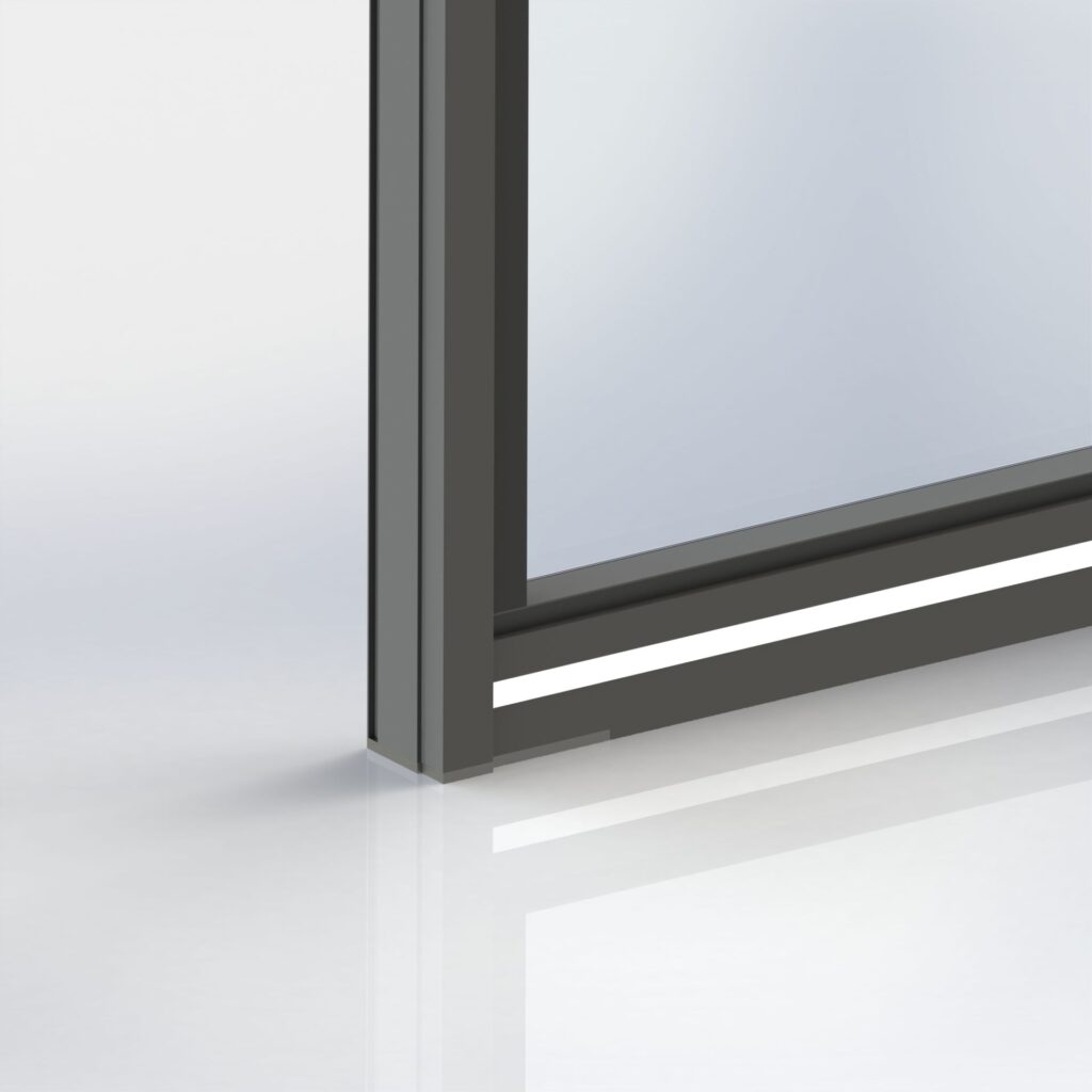 Il vetro è fissato al profilo con una speciale tecnica adesiva.