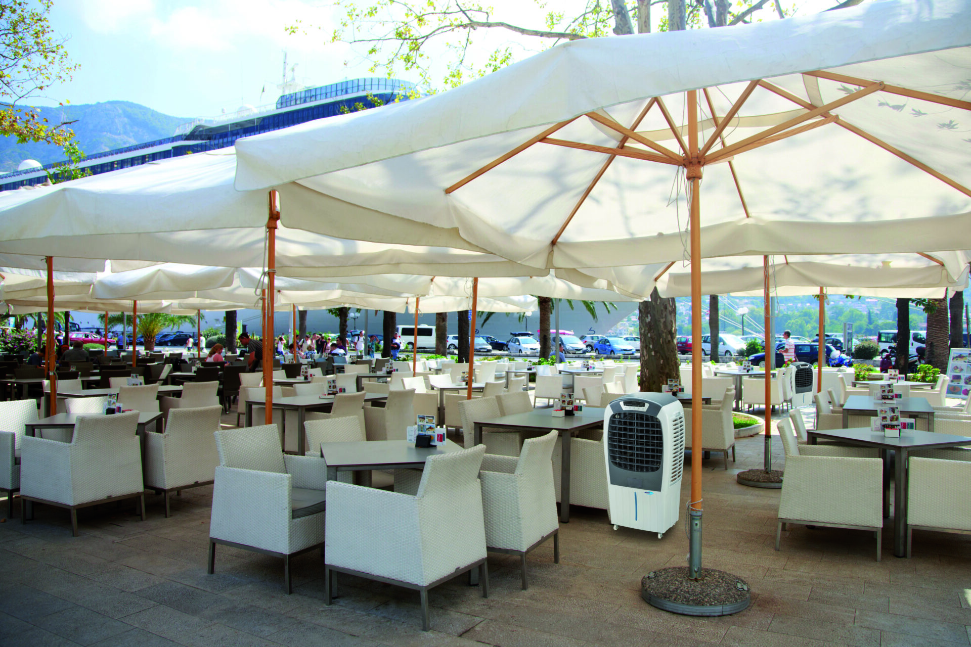 Per raffrescare ambienti aperti o semi-aperti localizzando il fresco nelle zone necessarie, con massima efficienza e risparmio energetico. La soluzione definitiva per rinfrescare a zone sotto i tendoni, le vele, gli ombrelloni e raffrescare i dehors di bar e ristoranti.