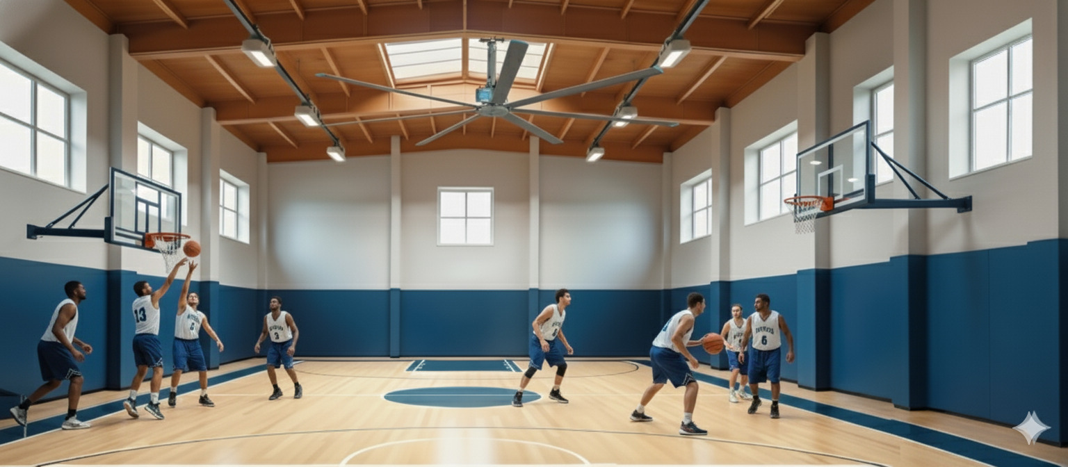 Una serie di ventilatori HVLS (High Volume Low Speed) a 5 pale per migliorare il comfort termico in ambienti di grandi dimensioni come magazzini, stabilimenti industriali, centri logistici, centri sportivi, allevamenti e stalle nel massimo silenzio.
