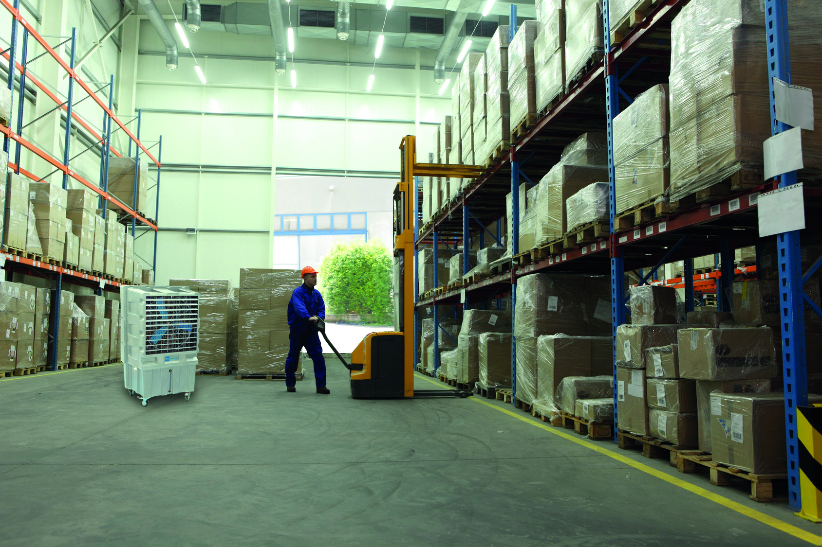 Когда наступает жаркая пора, этот агрегат с невероятной силой воздушного потока (42 000 м³/ч, с регулировкой 0–100 %) выступает как идеальное решение для создания комфорта за счет вентиляции воздуха внутри больших помещений (например, промышленных строений, ангаров, логистических комплексов и т. д.) или на улице.