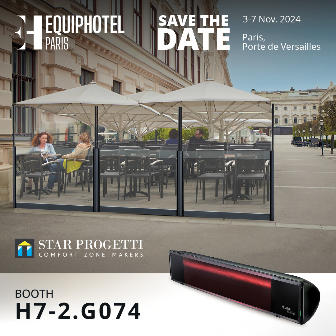 Venite a trovarci allo stand H7-2.G074 per scoprire i nostri riscaldatori a infrarossi Heliosa Hi Design e la gamma esclusiva di paraventi, moduli e strutture, pensati per offrire comfort ottimale e soluzioni su misura.